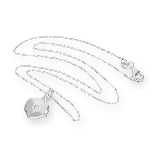 Prix habituelPetit médaillon en forme de cœur gravé en argent sterling et cristal CZ sur chaîne de 40 à 55 cm