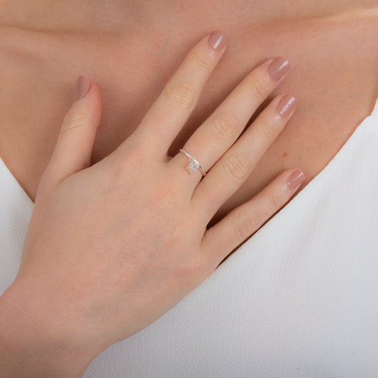 Prix habituelBague réglable en argent sterling avec pendentif en forme de cube carré et zircone cubique transparent