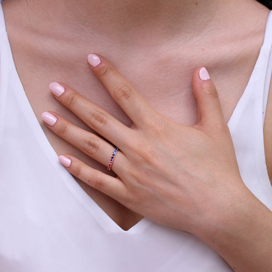 Prix habituelBague d'éternité en argent sterling et cristal CZ arc-en-ciel - Taille IW