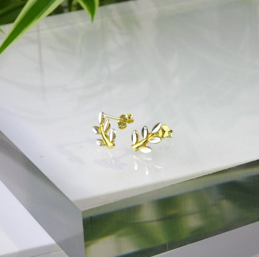 Prix habituelBoucles d'oreilles à tige en argent sterling plaqué or, forme de feuille et de branche taillée en diamant