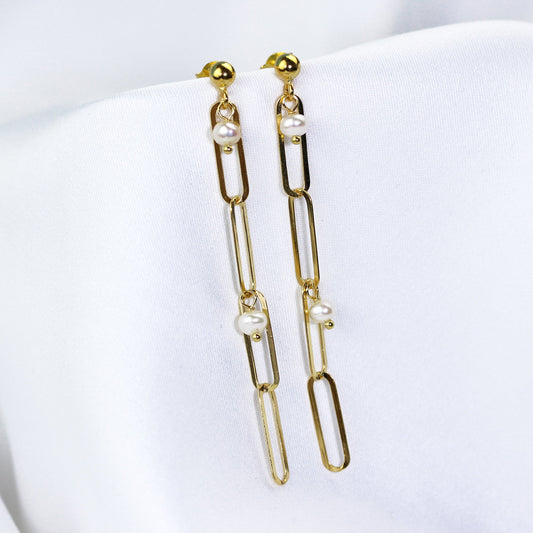 Prix habituelCollier à longs maillons en argent sterling plaqué or et perles