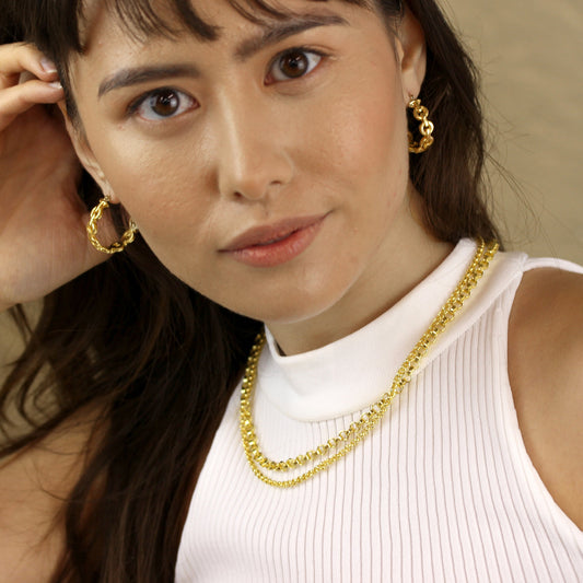 Prix habituelBoucles d'oreilles créoles à gros maillons en argent sterling plaqué or de 28 mm