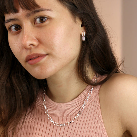 Boucles d'oreilles à tige en argent sterling à maillons ovales ouverts