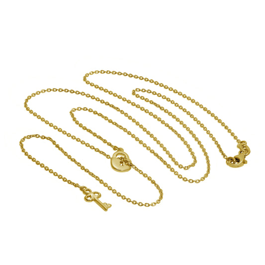 Collier pendentif cadenas à clé en argent sterling plaqué or