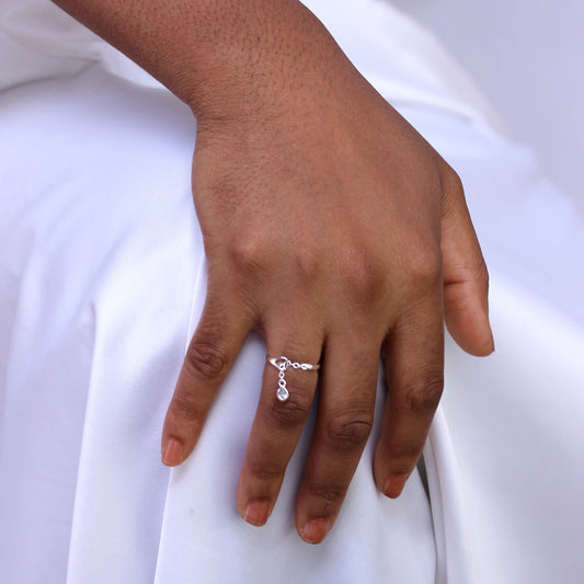 Prix habituelBague réglable en argent sterling avec chaîne en forme de larme et zircone cubique transparent
