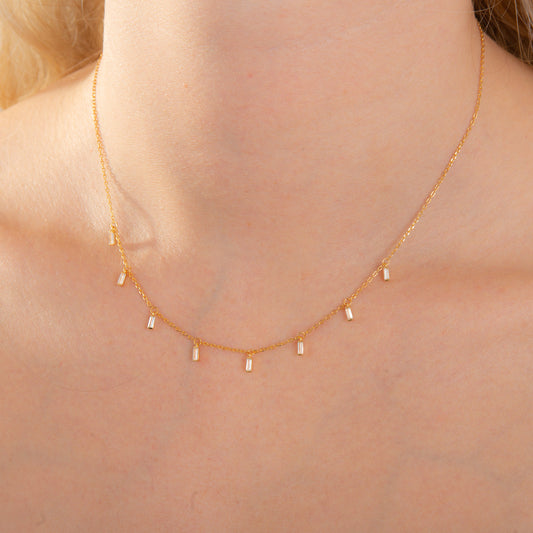 Prix habituelCollier en argent sterling plaqué or avec plusieurs minuscules zircones cubiques baguettes transparentes