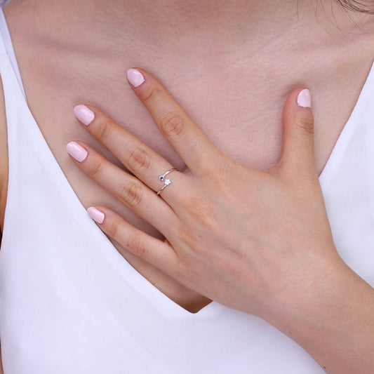 Prix habituelBague réglable ouverte en argent sterling avec petites étoiles et zircones cubiques transparents
