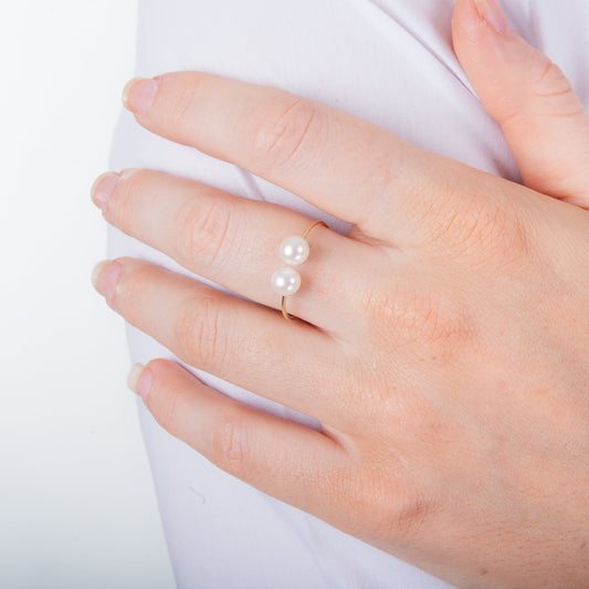 Prix habituelBague ouverte réglable en or jaune 9 carats avec double perle d'eau douce blanche