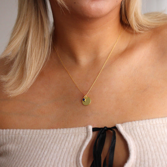 Prix habituelCollier en argent sterling plaqué or avec pierre de naissance CZ et plaque ronde gravable de 40 à 55 cm