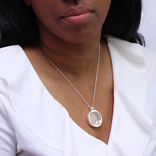 Prix habituelGrand médaillon flottant rond en argent sterling sur chaîne de 40 à 61 cm