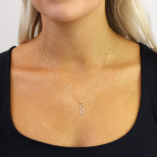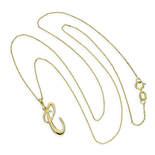 Collier avec pendentif en or 9 carats, lettre E, calligraphie fantaisie, 40 à 50 cm
