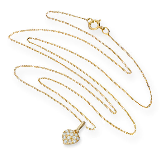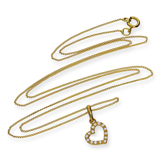Prix habituelCollier avec pendentif en forme de cœur plat en or 9 carats et cristal CZ transparent, 40 à 50 cm
