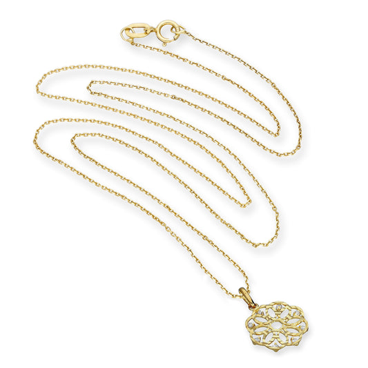 Prix habituelMédaillon ovale en or 9 carats avec motif floral sur chaîne de 40 à 45 cm