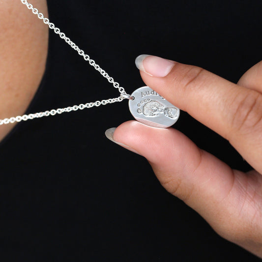 Prix habituelCollier ovale en argent sterling avec empreinte de pied, 40 à 61 cm