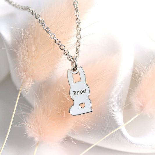 Prix habituelCollier personnalisé en argent sterling avec nom de lapin, 40 à 61 cm