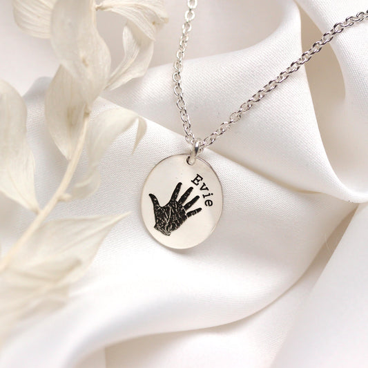 Prix habituelCollier ovale en argent sterling avec empreinte de main, 40 à 61 cm