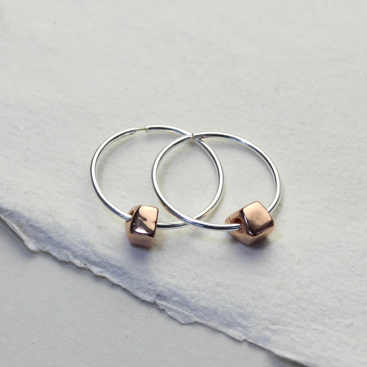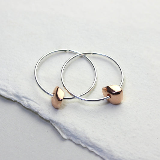 Prix habituelCréoles en argent sterling de 18 mm avec perles pépites épaisses plaquées or rose
