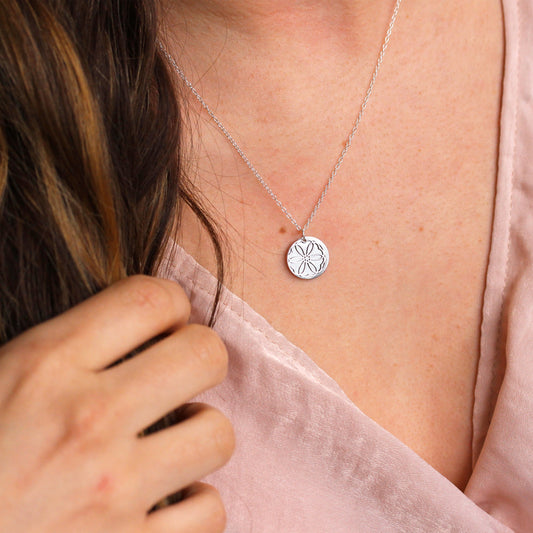 Prix habituelCollier en argent sterling avec fleur de naissance d'avril et étiquette gravable de 13 mm, 14 à 22 pouces