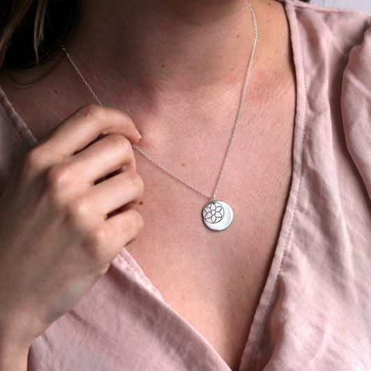Prix habituelCollier en argent sterling avec fleur de naissance de juillet et étiquette gravable de 13 mm, 14 à 22 pouces