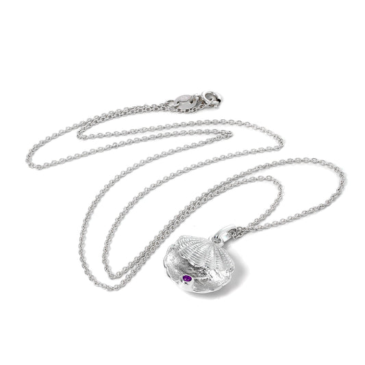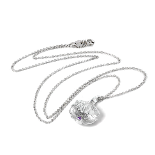 Prix habituelCollier en argent sterling avec coquille d'huître et pierre de naissance en cristal CZ améthyste