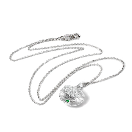 Prix habituelCollier en argent sterling avec coquille d'huître et pierre de naissance émeraude en cristal CZ