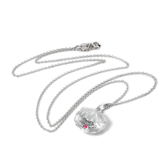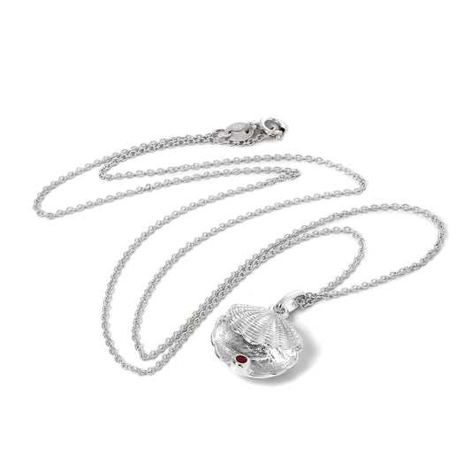 Prix habituelCollier en argent sterling avec coquille d'huître et pierre de naissance en cristal CZ et rubis