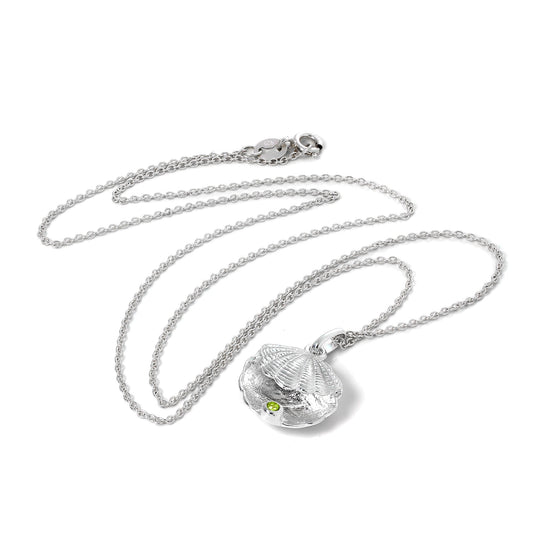 Prix habituelCollier en argent sterling avec coquillage d'huître et pierre de naissance péridot en cristal CZ