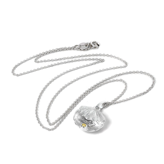 Collier en argent sterling avec coquillage d'huître et pierre de naissance en cristal de citrine CZ