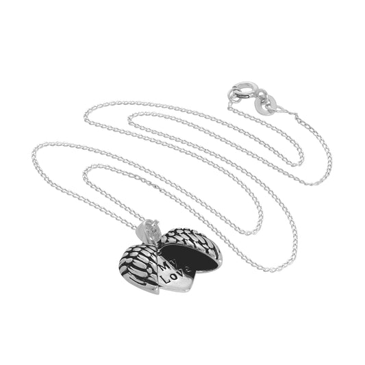 Prix habituelPendentif en argent sterling avec ailes d'ange ouvrantes et petit cœur à l'intérieur sur chaîne de 35 à 81 cm