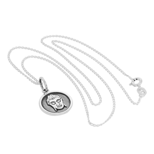 Prix habituelCollier pendentif rond en argent sterling avec visage de Bouddha de 14 à 32 pouces