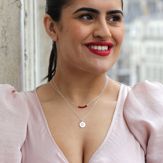 Prix habituelCollier médaillon soleil en argent sterling avec grenat et zircone cubique, 35,6 à 81,3 cm