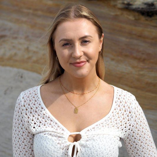 Prix habituelFine Gold Plated Sterling Silver & Orange Enamel Confetti Chain Necklace - 16 Inches