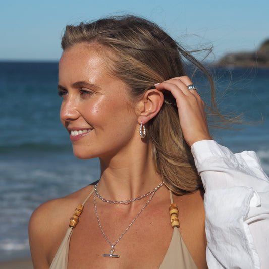 Prix habituelCollier chaîne à billes trombone en argent sterling avec barre en T