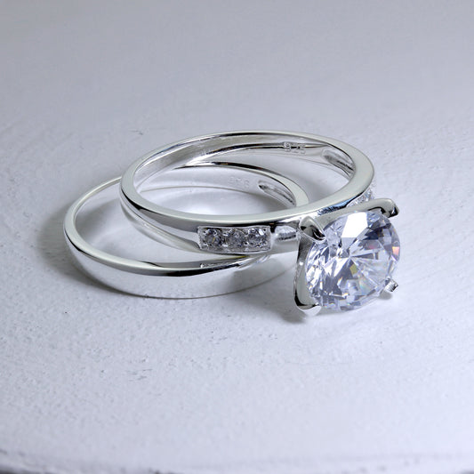 Prix habituelEnsemble bague de fiançailles et alliance en argent sterling et cristal CZ