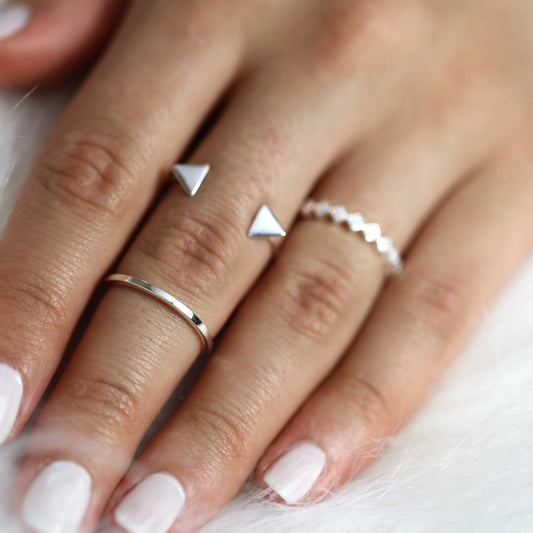 Prix habituelEnsemble de bagues empilables géométriques carrées en argent sterling avec triangles et zircones cubiques