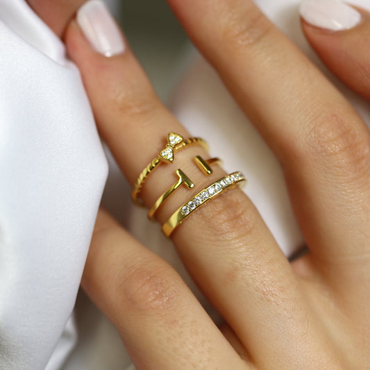 Prix habituelEnsemble de bagues empilables en argent sterling plaqué or avec barre et zircone cubique
