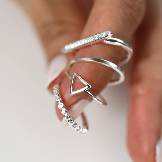 Prix habituelEnsemble de bagues empilables en argent sterling avec triangles et barres géométriques en oxyde de zirconium