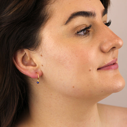 Boucles d'oreilles créoles 12 mm en argent sterling plaqué or avec saphir et zircone cubique