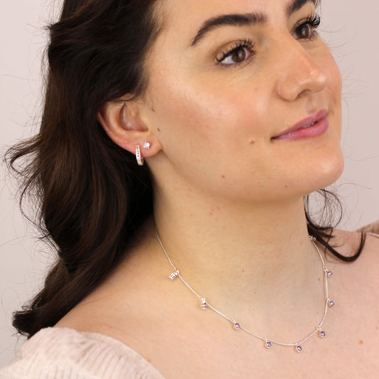 Prix habituelBoucles d'oreilles créoles en argent sterling avec pavé d'alexandrite et zircone cubique de 15 mm
