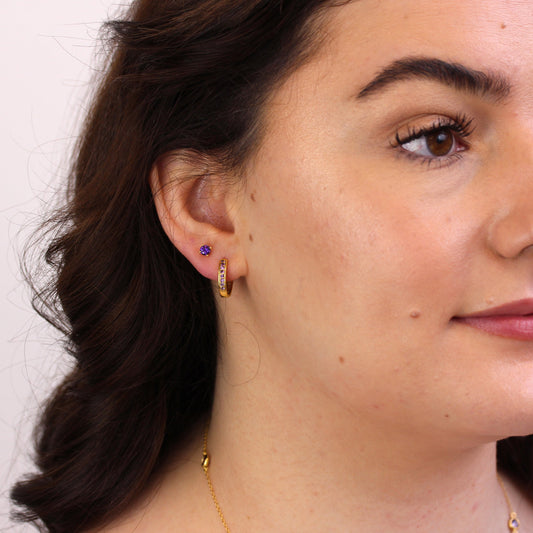 Prix habituelEnsemble de boucles d'oreilles créoles en argent sterling plaqué or avec améthyste et zircone cubique et clous d'oreilles de 4 mm