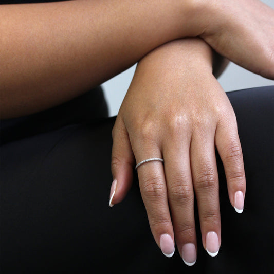 Prix habituelBague d'éternité empilable en or blanc 9 carats et cristal CZ transparent, taille IU