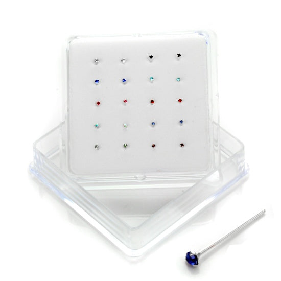 Lot de 20 clous de nez en argent sterling sertis de 4 griffes et d'oxydes de zirconium de 2 mm