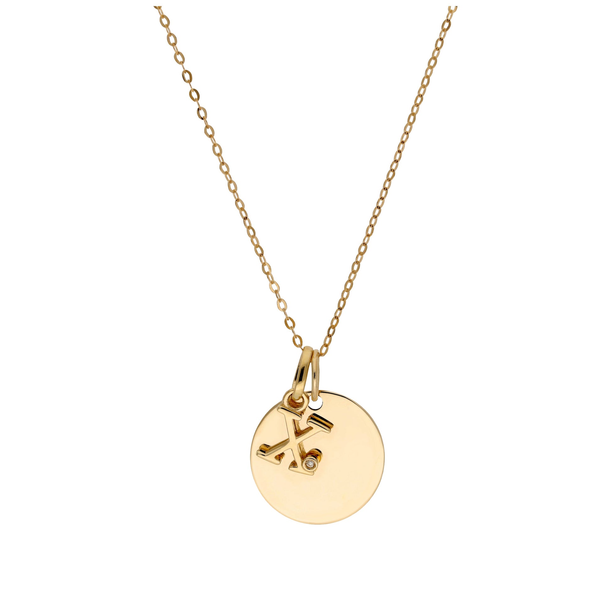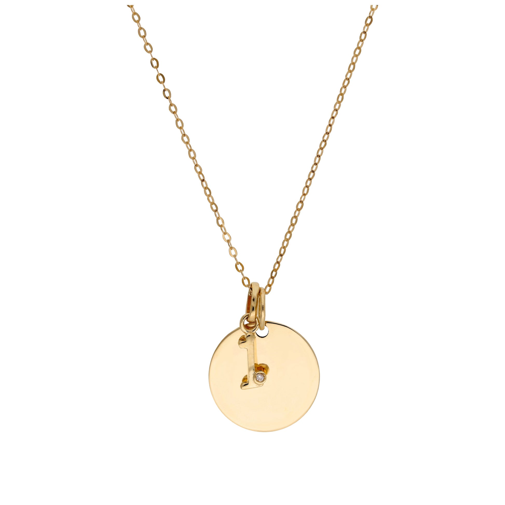 9ct Gold 0.4pts Diamond Letter A - Z & Engravable Round Tag Necklace 16 - 24 Inches