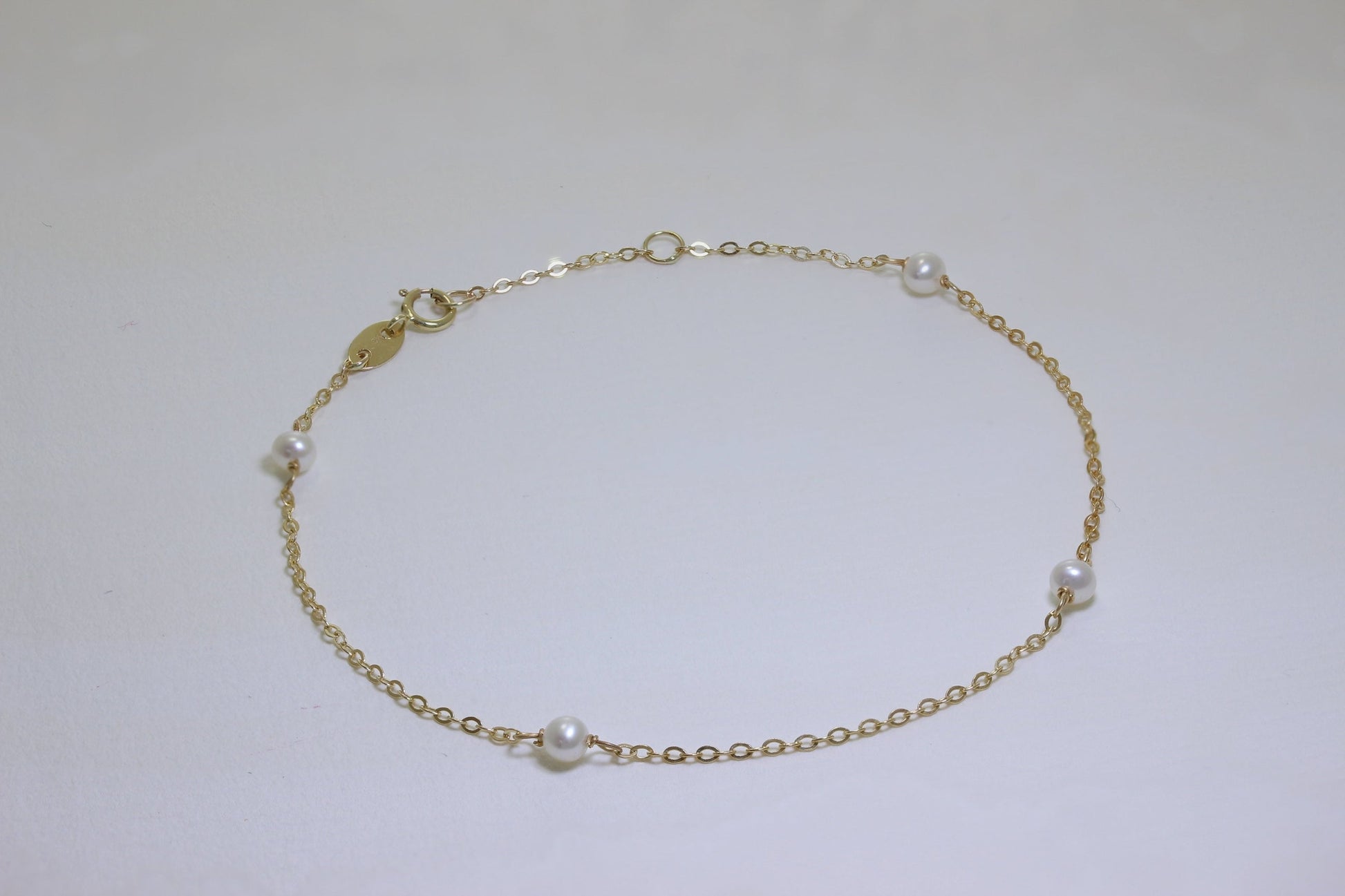 Bracelet extensible de 19 cm en or 9 carats et perles de 3 mm