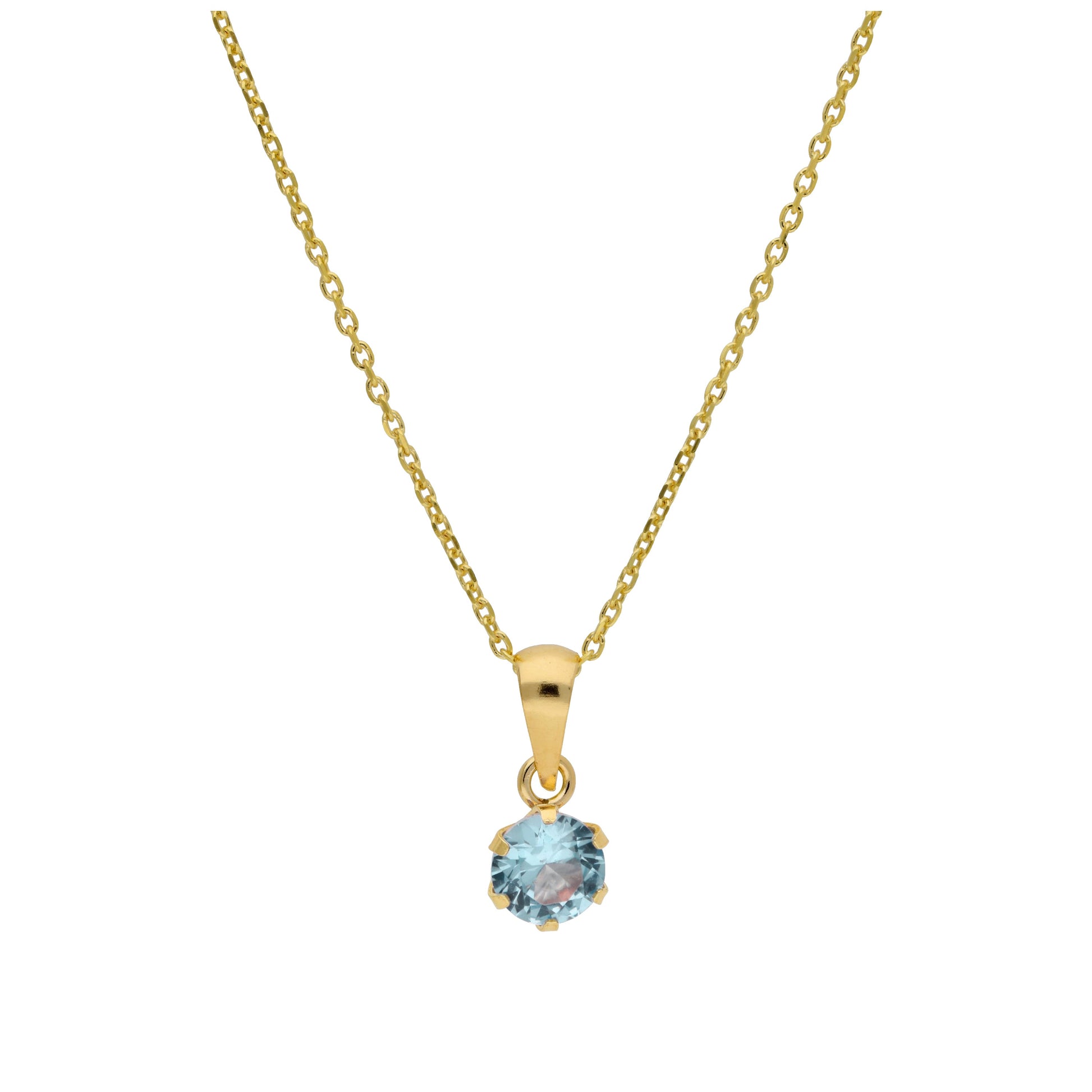 Collier en or 9 carats avec aigue-marine ronde de 5 mm et zircone cubique, 40 à 50 cm