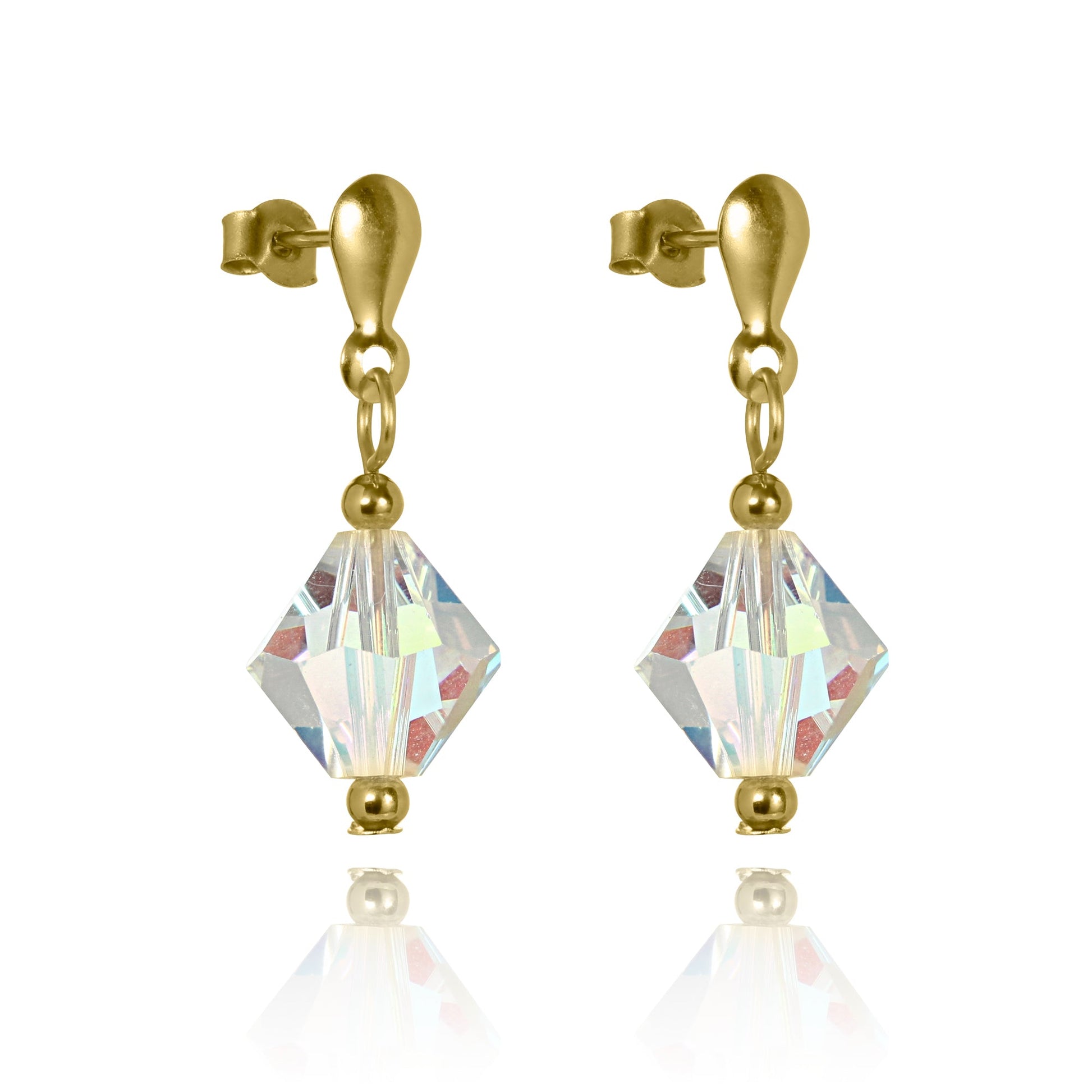 Boucles d'oreilles pendantes en or 9 carats et cristal Aurora Borealis