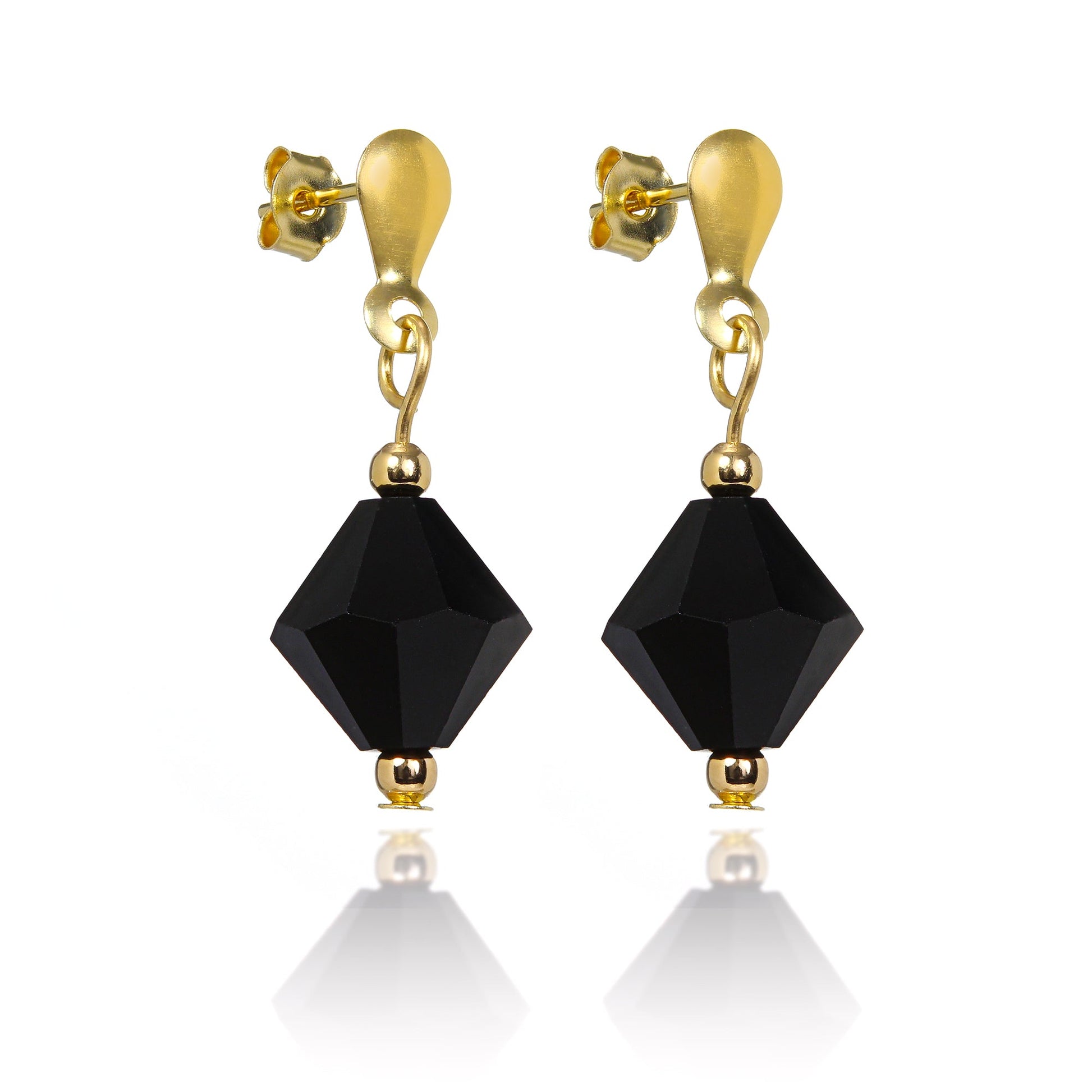 Boucles d'oreilles pendantes en or 9 carats et cristal noir