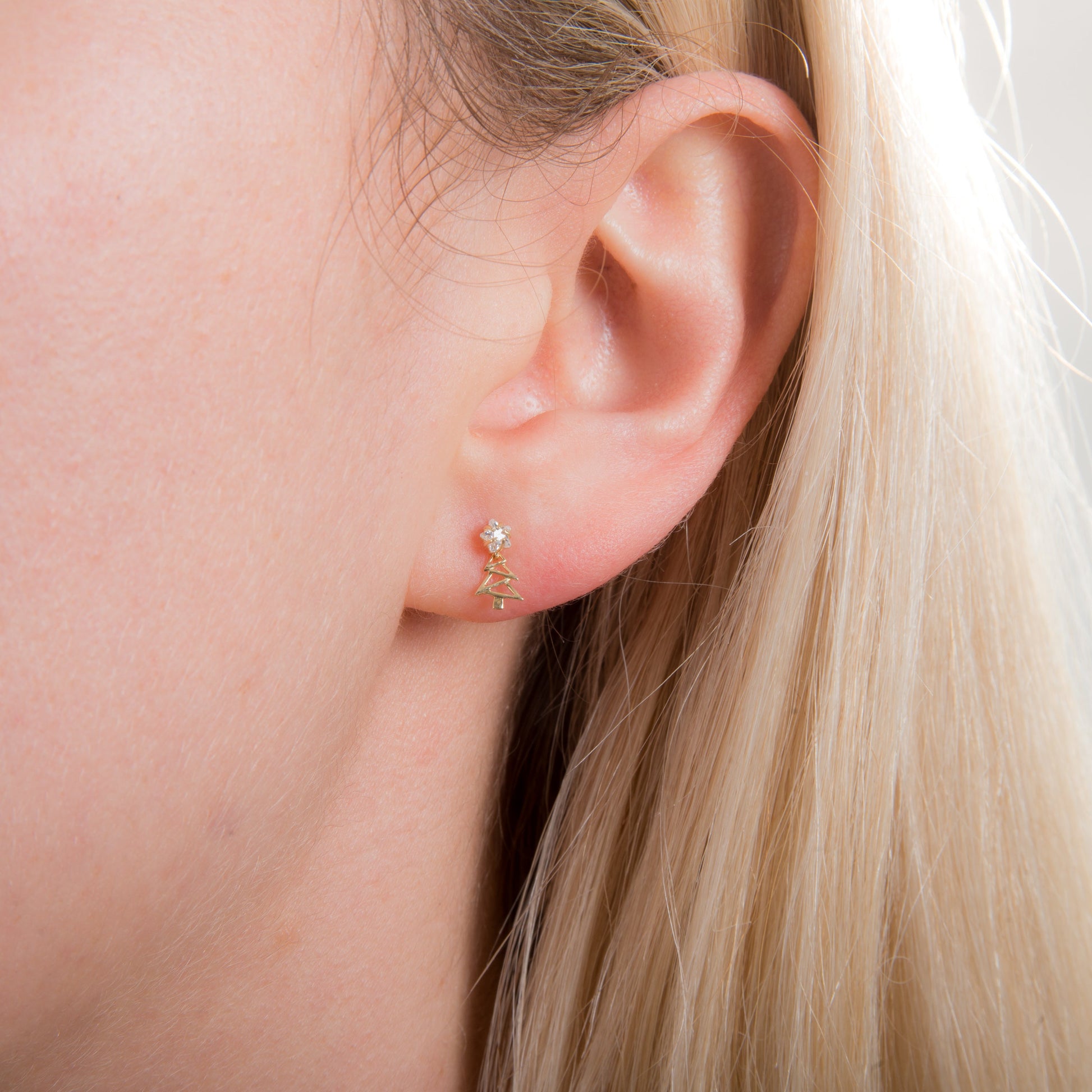Boucles d'oreilles pendantes en or 9 carats avec étoile en zircone cubique transparent et sapin de Noël