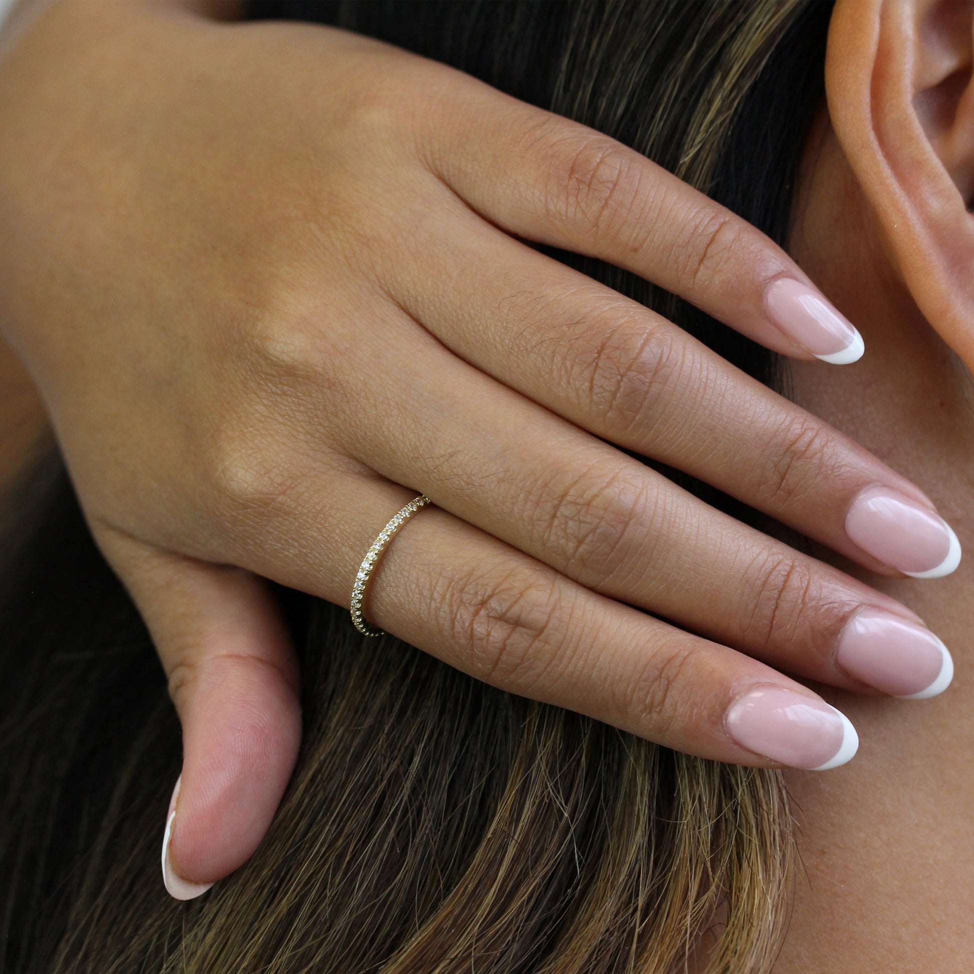 Bague d'éternité empilable en or 9 carats et cristal CZ transparent, taille IU