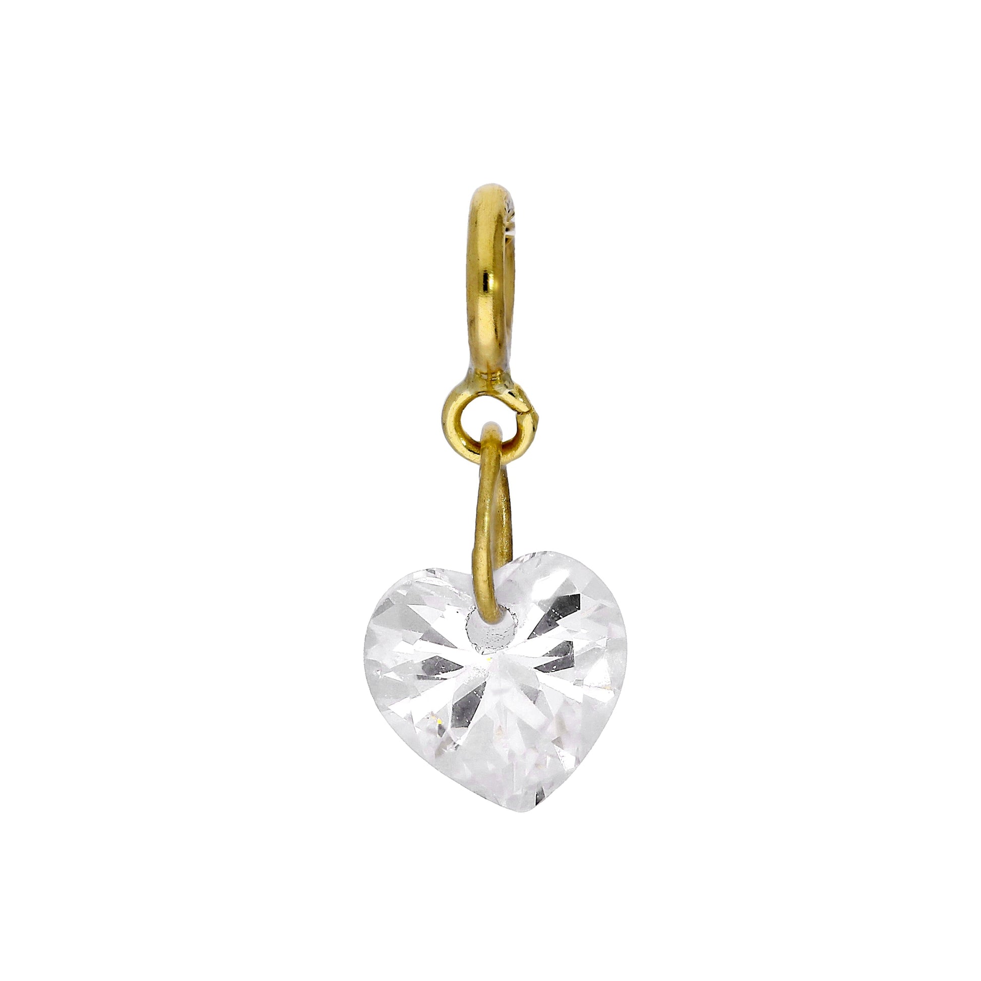 Breloque à clip en forme de cœur en or 9 carats et cristal CZ transparent